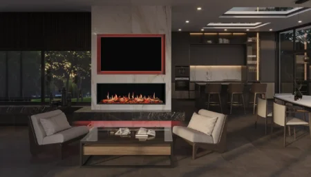 Majestic Front View Electric Fire In Marble Cladded Media Wall